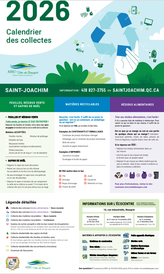 La Municipalité de Saint-Joachim se préoccupe de la saine gestion des matières résiduelles sur son territoire.